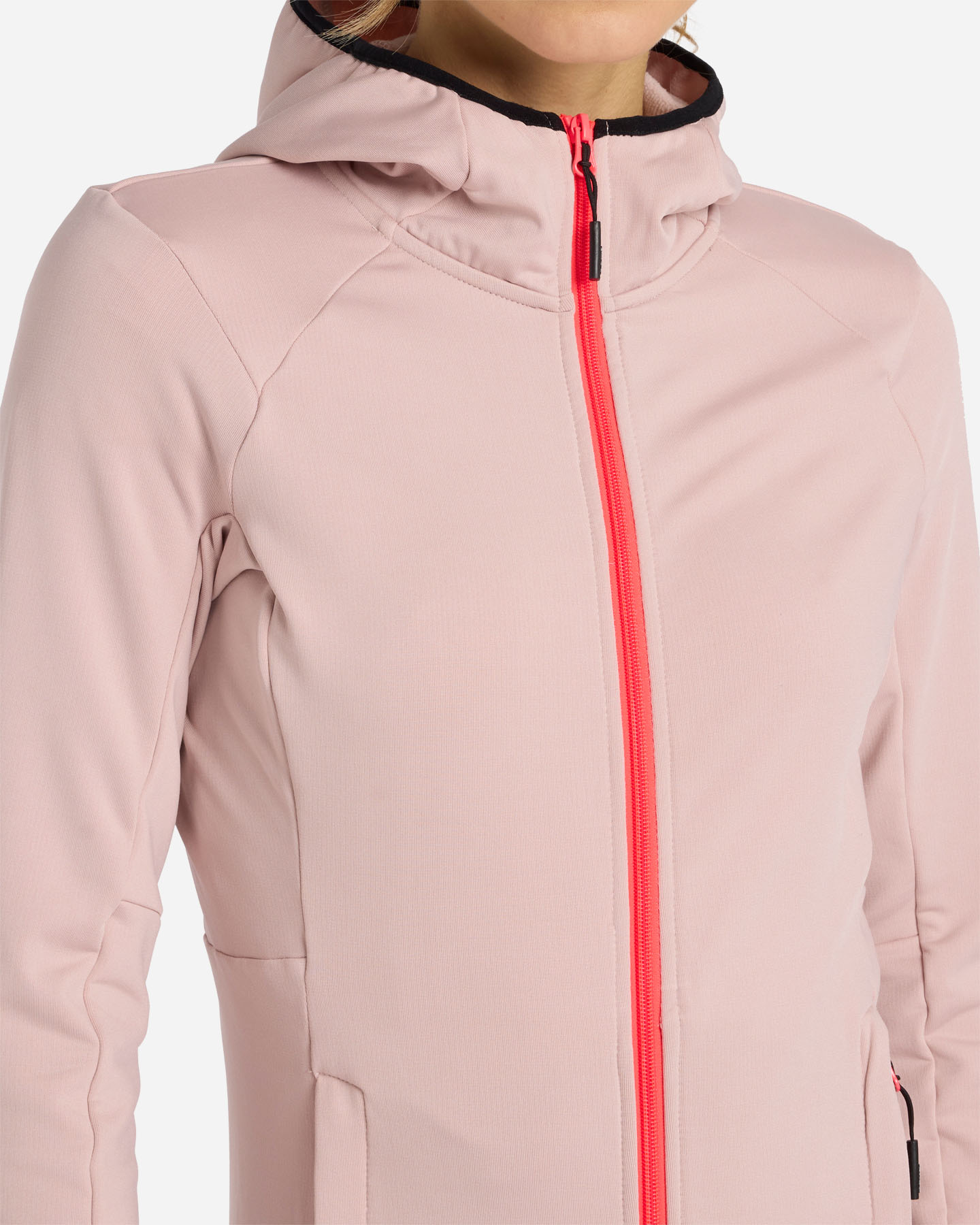 Questa felpa tecnica in tessuto pile con lavorazione waffle, presenta tagli tecnici e un inserto nel sottomanica per favorire i movimenti durante le attività . L'apertura è centrale, le tasche laterali con zip hanno un tiretto personalizzato. Il fondo, il cappuccio e i polsi hanno un tape elasticizzato.
