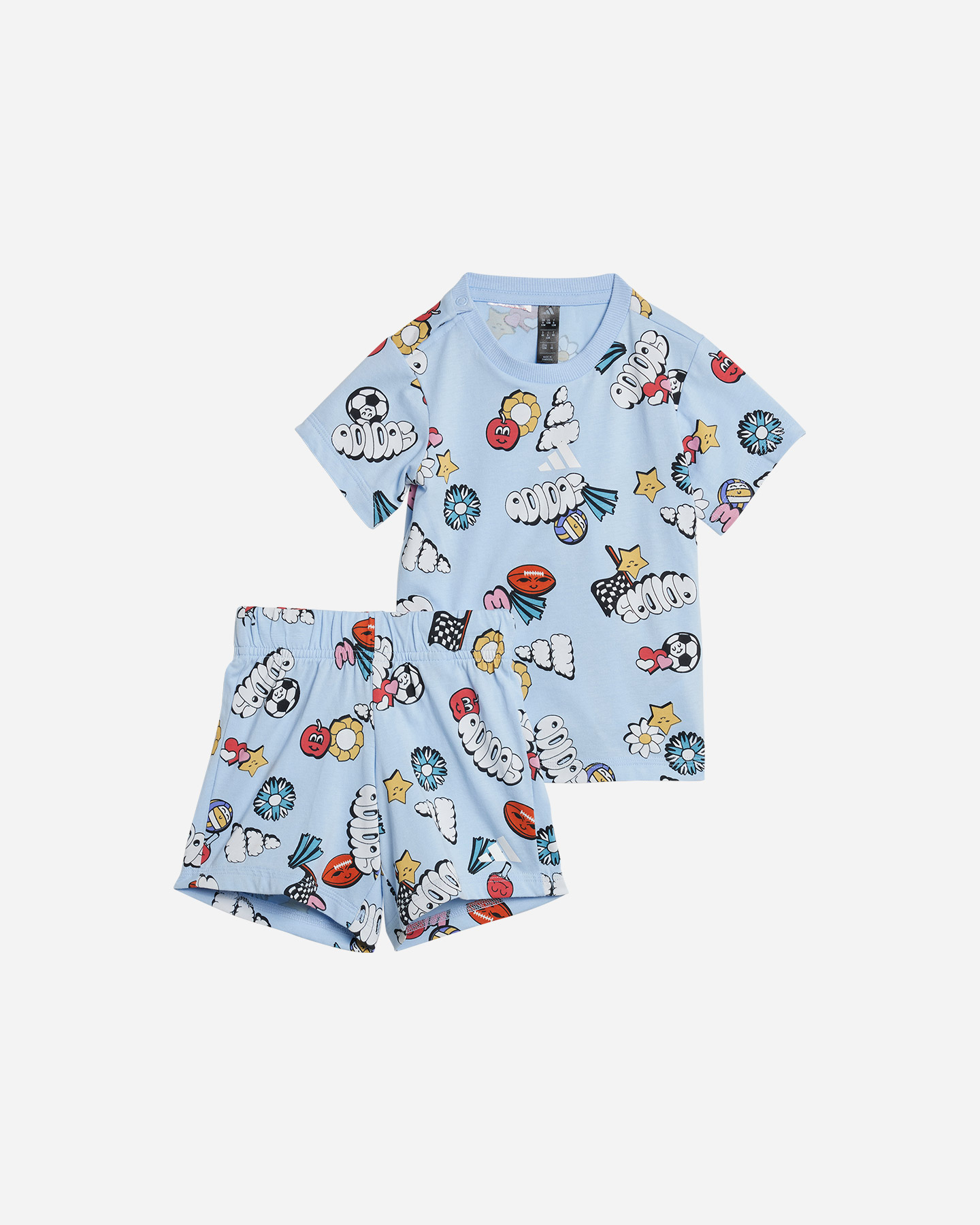 Creato per i più piccoli, questo completo Adidas infant composto da t-shirt e short dona un tocco divertente a qualsiasi giornata. La morbida struttura in jersey offre il massimo comfort in ogni occasione.