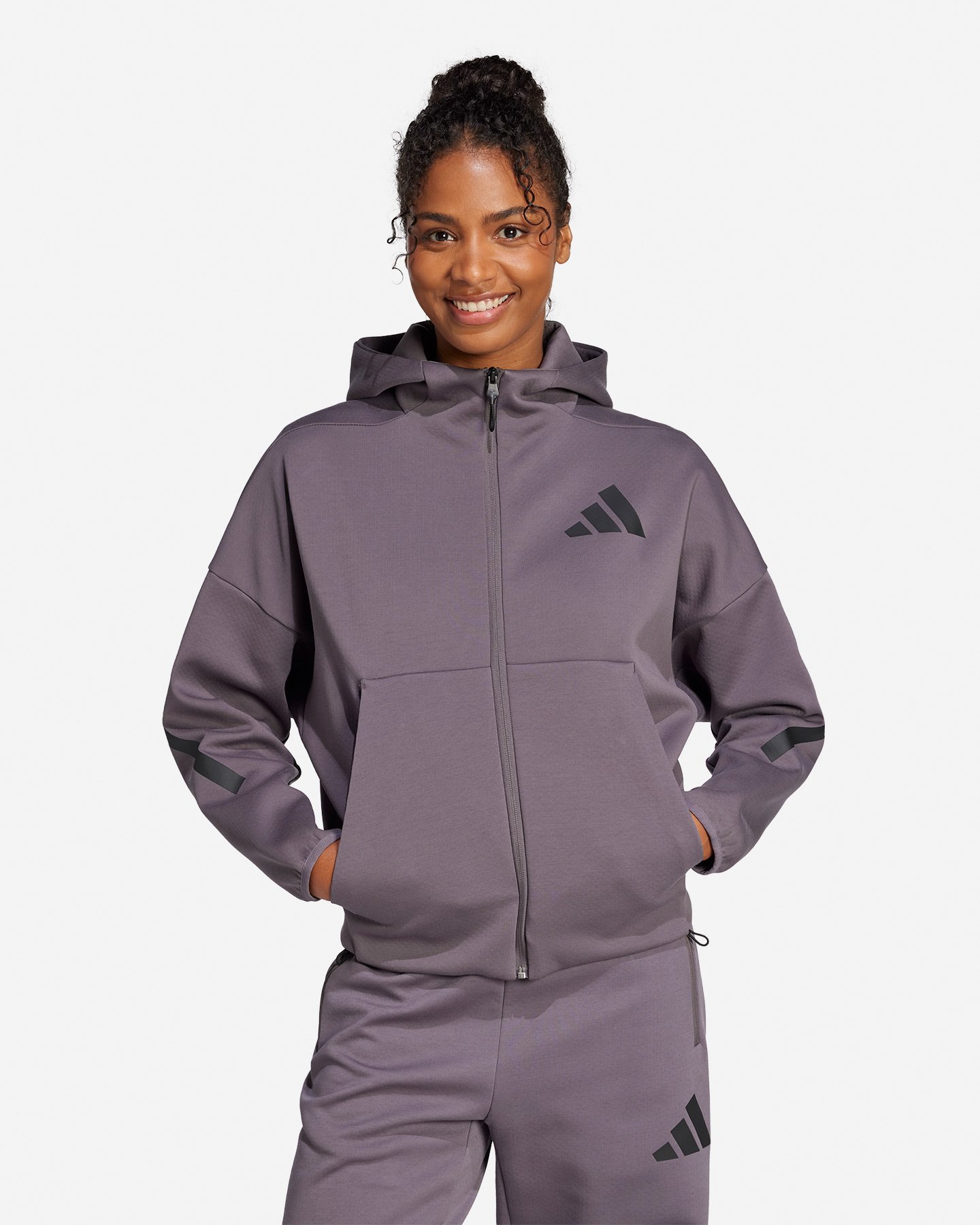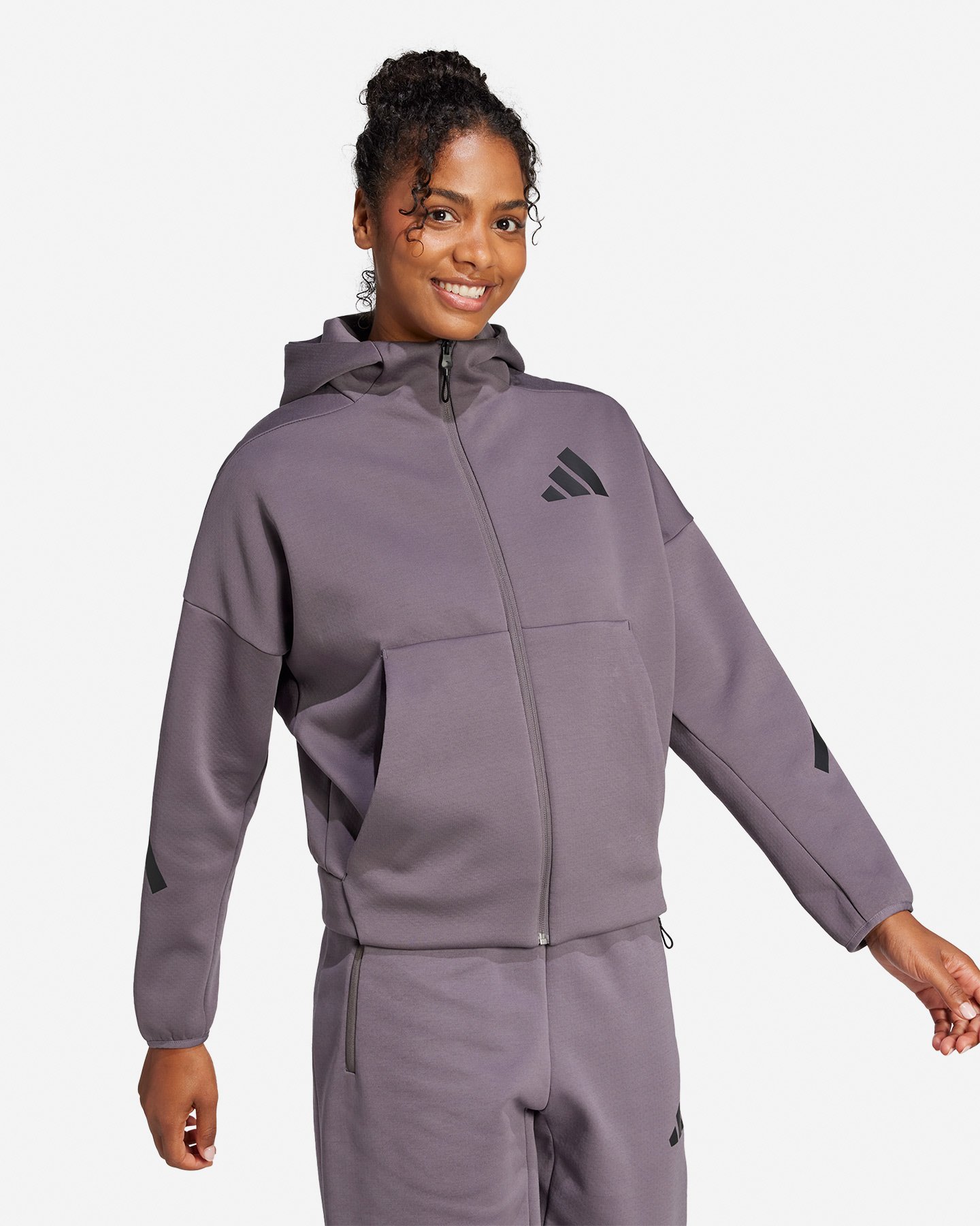 Felpa Adidas NEW ZNE W - Donna - Cappuccio - Zip integrale - Grafiche in gomma