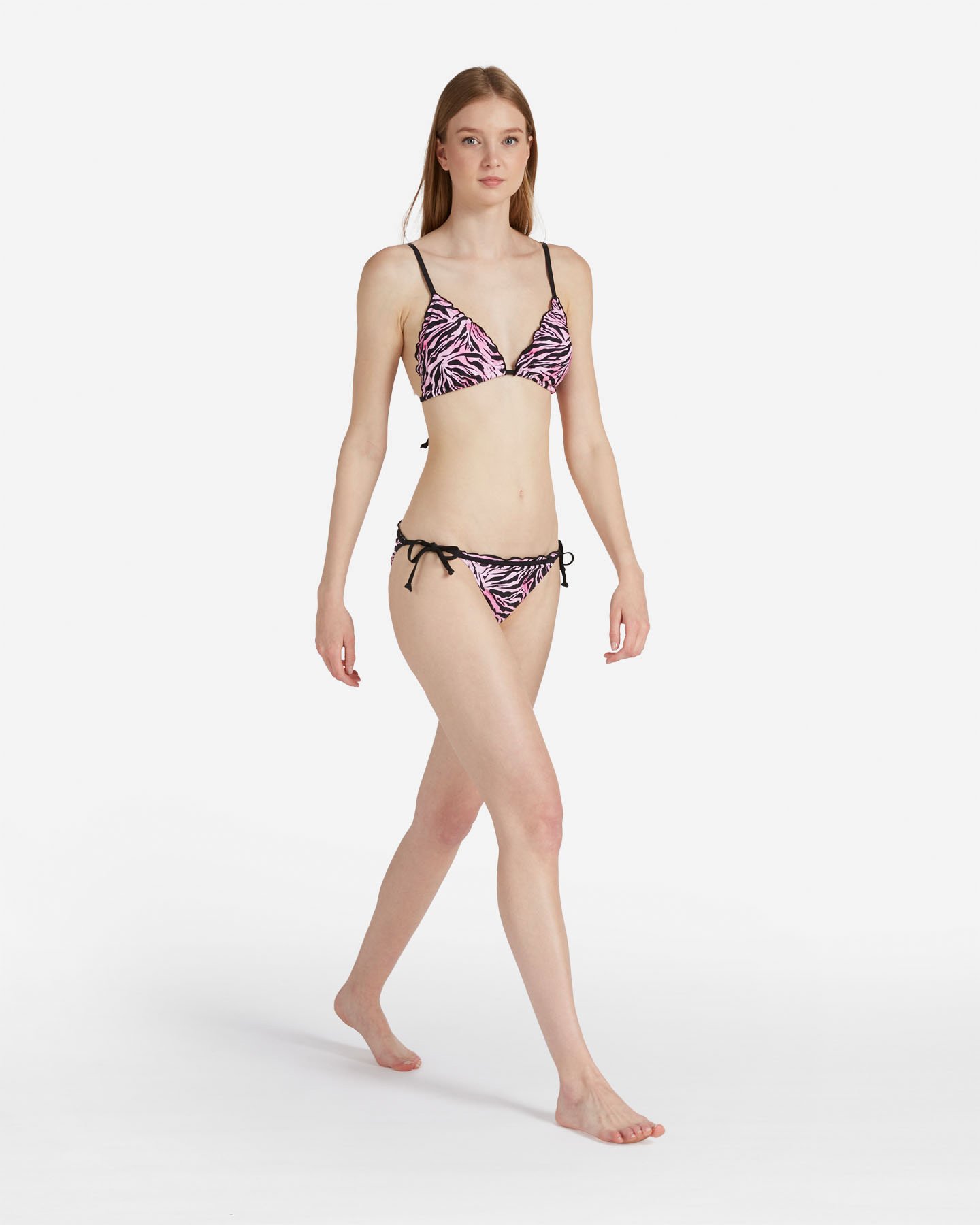 Questo bikini a triangolo presenta una fantasia ed una chiusura con fiocchi laterali sullo slip, pratico per essere indossato nelle tue giornate al mare.