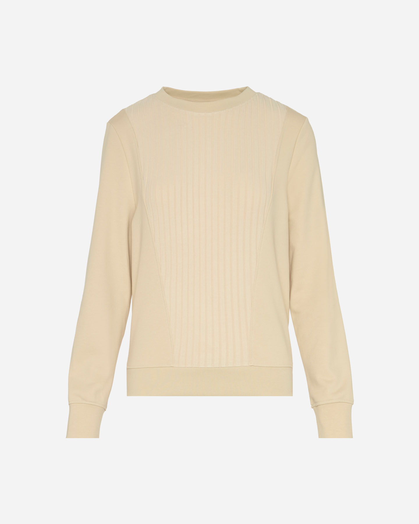 Questa felpa girocollo presenta un inserto davanti con tessuto effetto in ciniglia rigato in morbido modal.