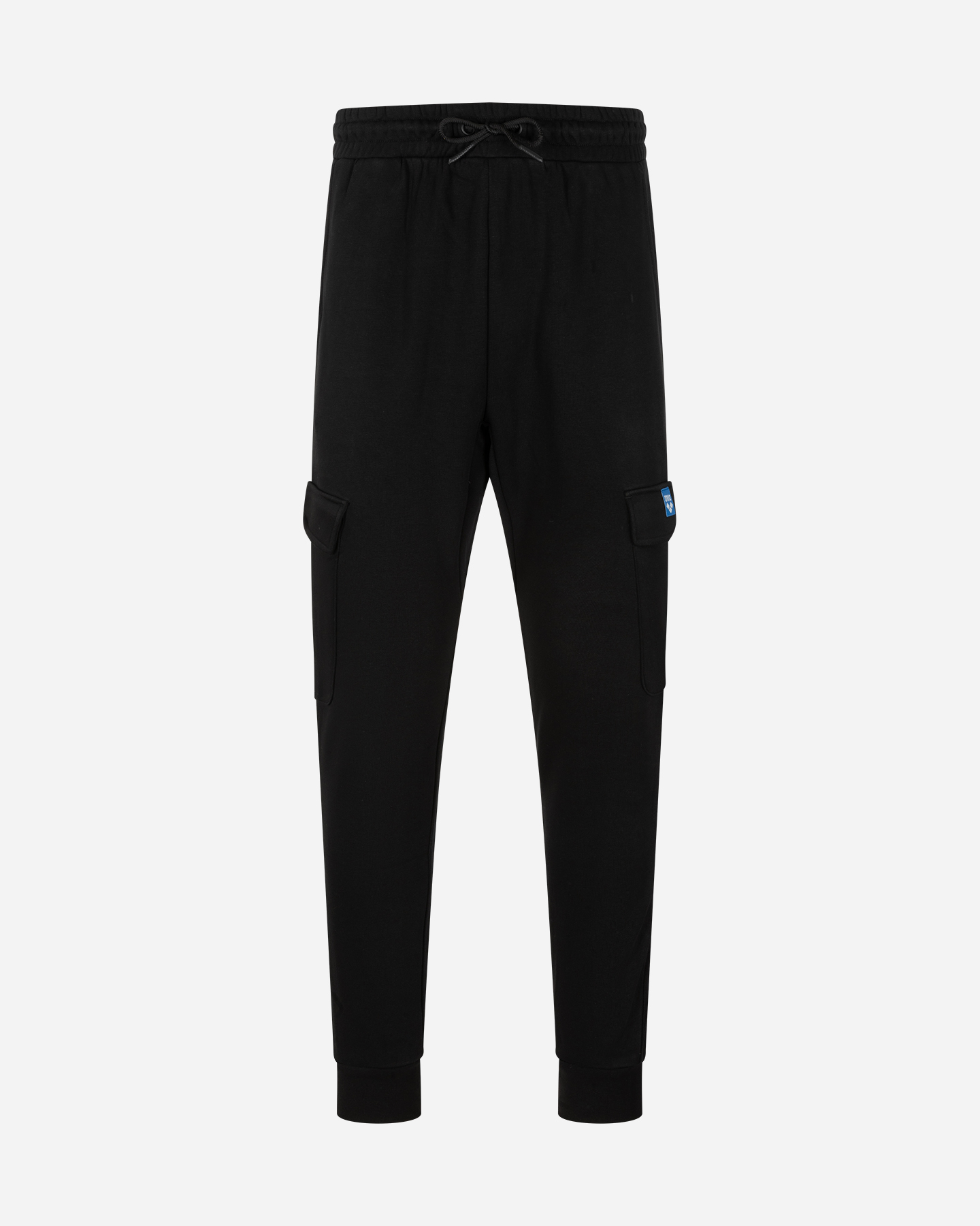 Questo pantalone modello jogger-cargo con rib in vita, è regolabile con drawcord esterni. Presenta tasche alla francese e tasconi applicati. Il fondo gamba con polsino ha una lavorazione a costine, mentre il logo del brand sull'etichetta jaquard, è inserita sopra la flap della tasca sinistra.