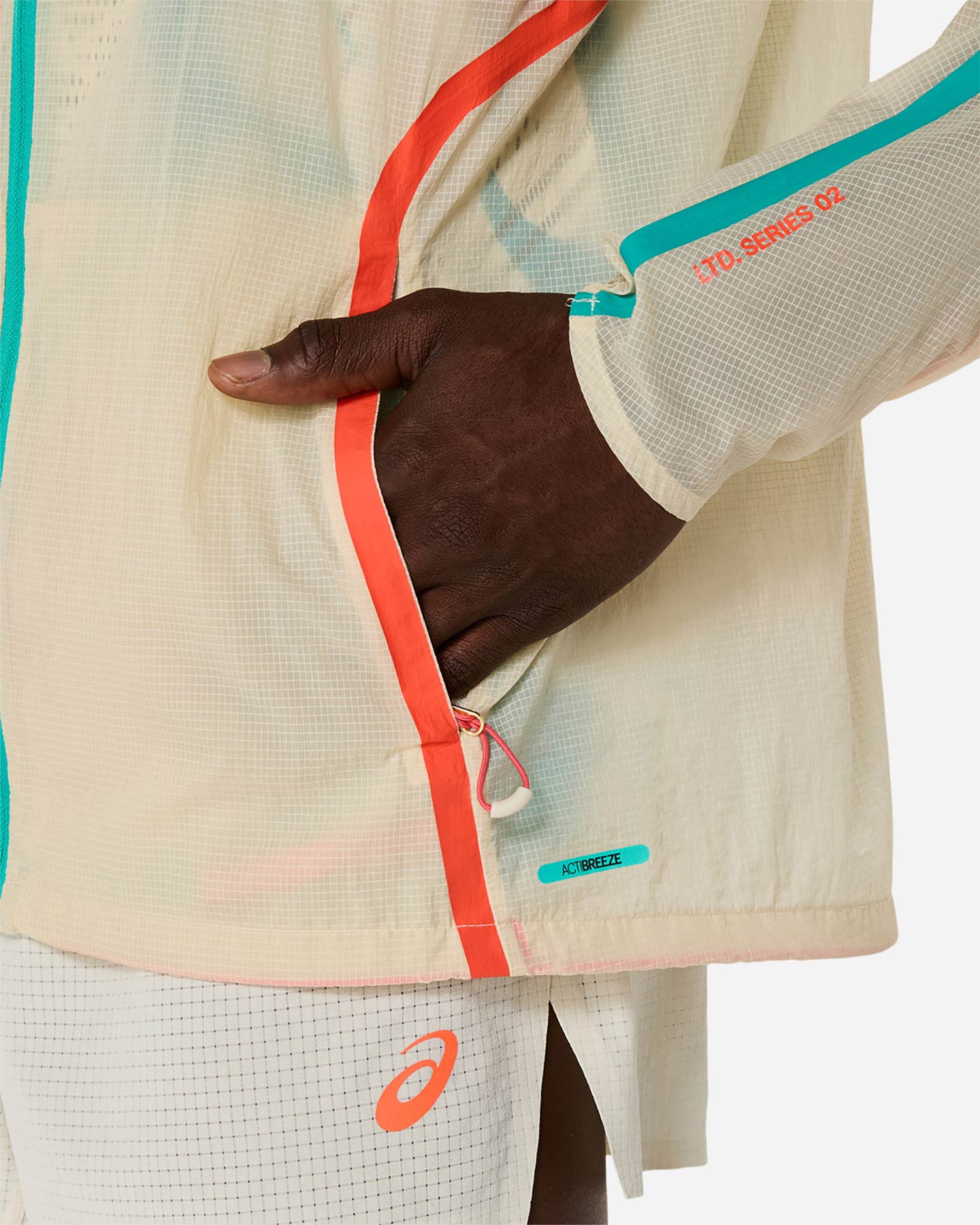 Questa giacca da corsa Road packable è leggera e trasparente e realizzata in tessuto rivestito con una finitura idrorepellente per proteggerti dalla pioggia leggera. Presenta un cappuccio regolabile che può essere facilmente riposto all'interno di una tasca laterale quando non serve. La stampa in serie limitata è ispirata al trucco del teatro Kabuki in Giappone. Fornita inoltre da dettagli di ventilazione sotto le ascelle, per una maggiore traspirabilità .