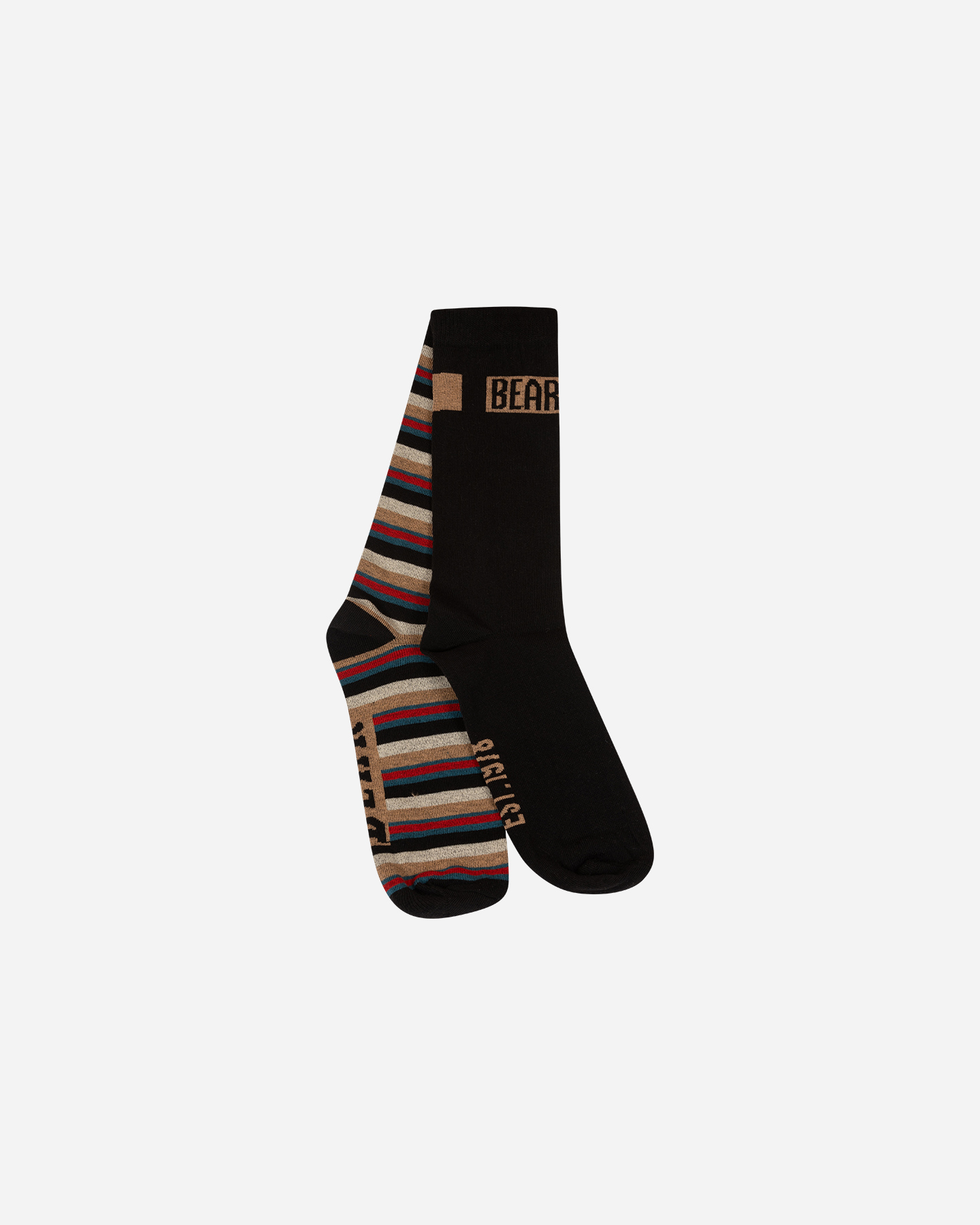 Queste calze bipack presentano un formato composto da una calza tinta unita, con scritta bear in alto e da una calza rigata. Sono realizzate in caldo cotone, traspiranti e morbide.