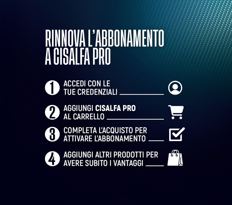 Rinnova subito l’abbonamento Cisalfa PRO online, sull’app o in negozio.
