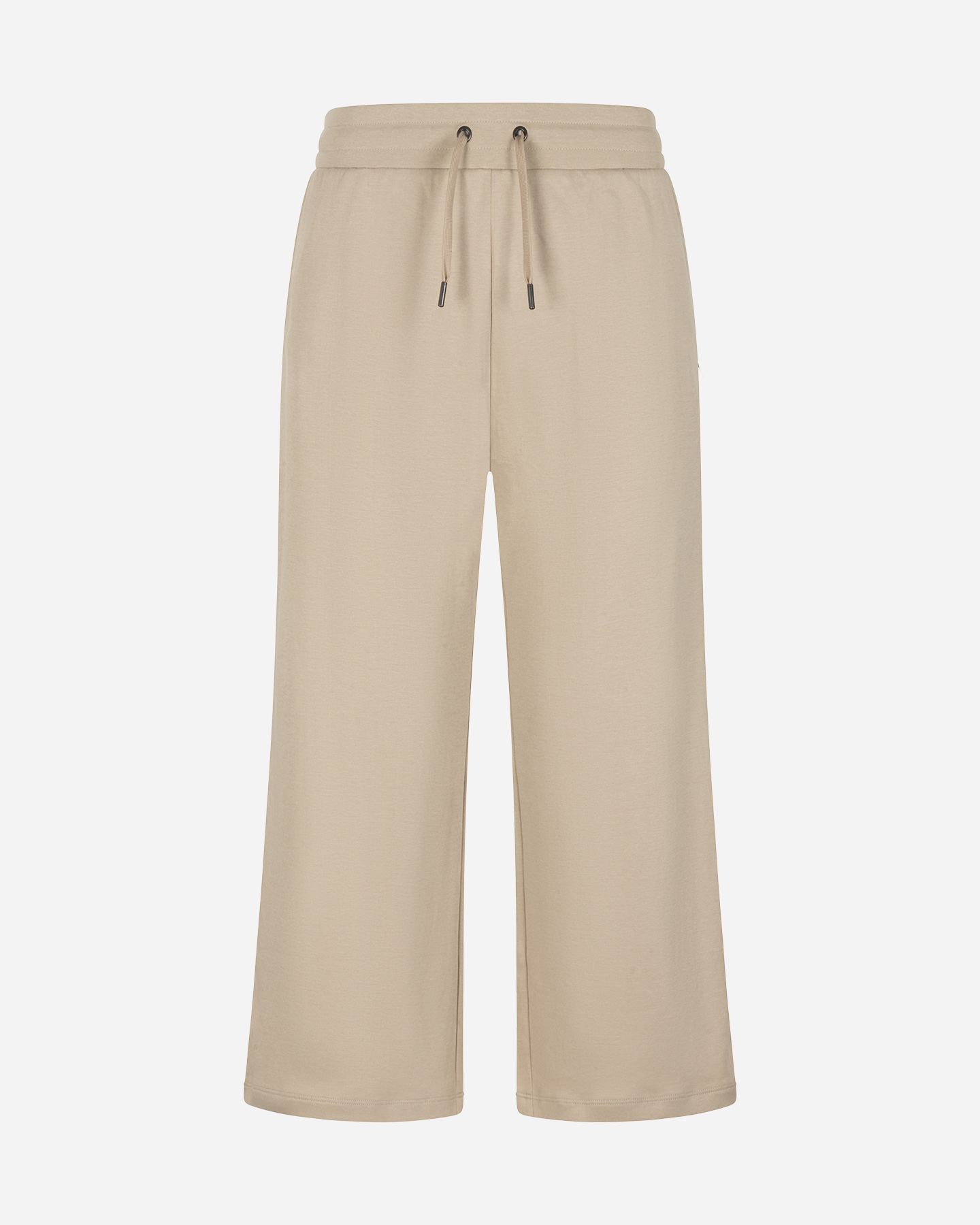 Con questo pantalone potrai rimanere comoda e alla moda in ogni momento. Realizzato in puro cotone, presenta un modello jogger 7/8 di lunghezza, con rib in vita regolabile da drawcord esterni e tasche alla francese. Il fondo gamba dritto e la personalizzazione del Brand su uno charm quadrato cucito sotto la tasca a sinistra conferiscono un tocco di stile unico.