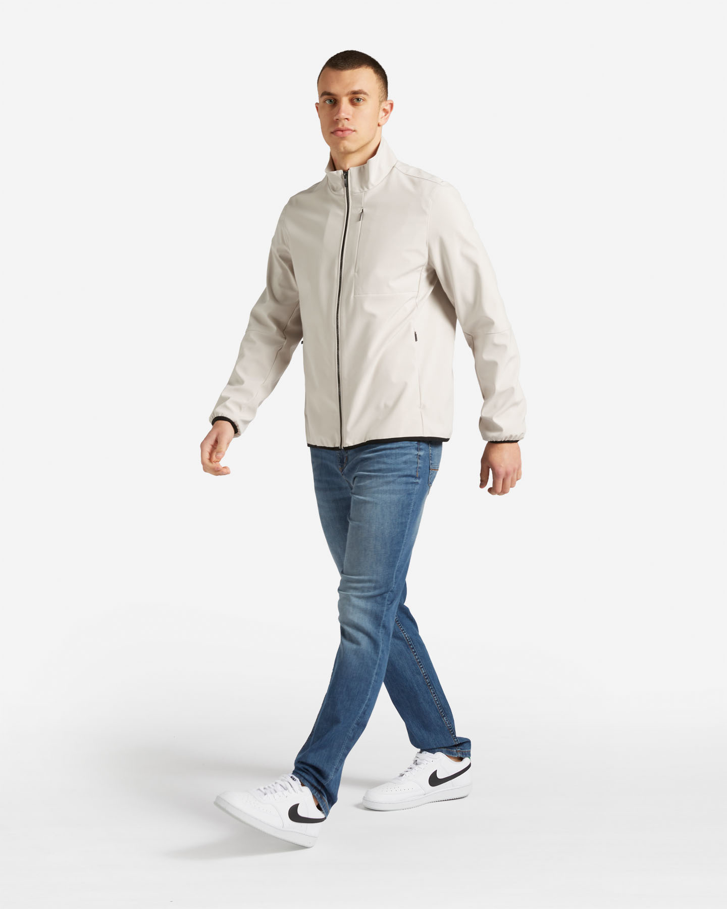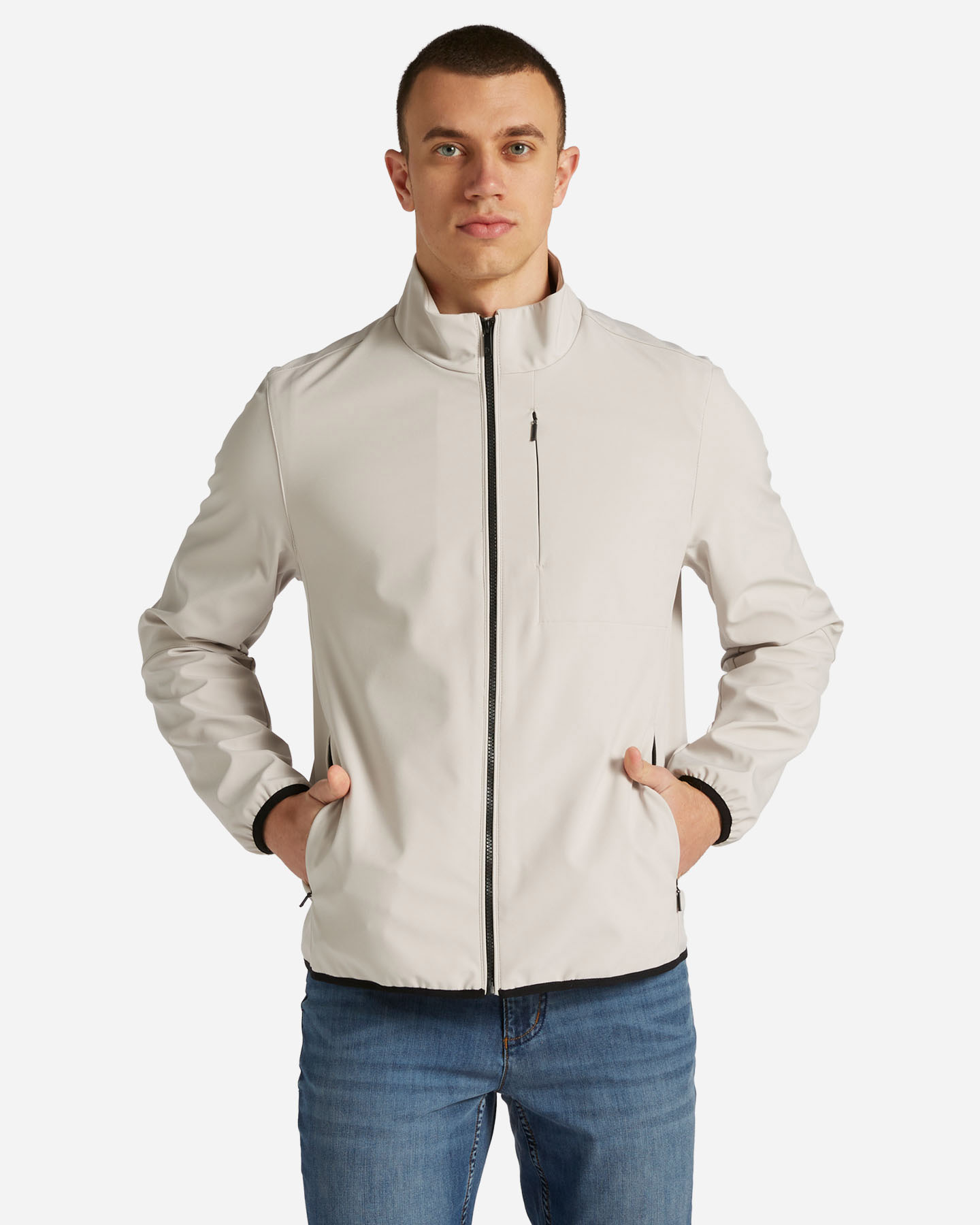Questo giubbino è un capo d'ispirazione tecnica, realizzato in tessuto accoppiato, si addice ad ogni occasione.
