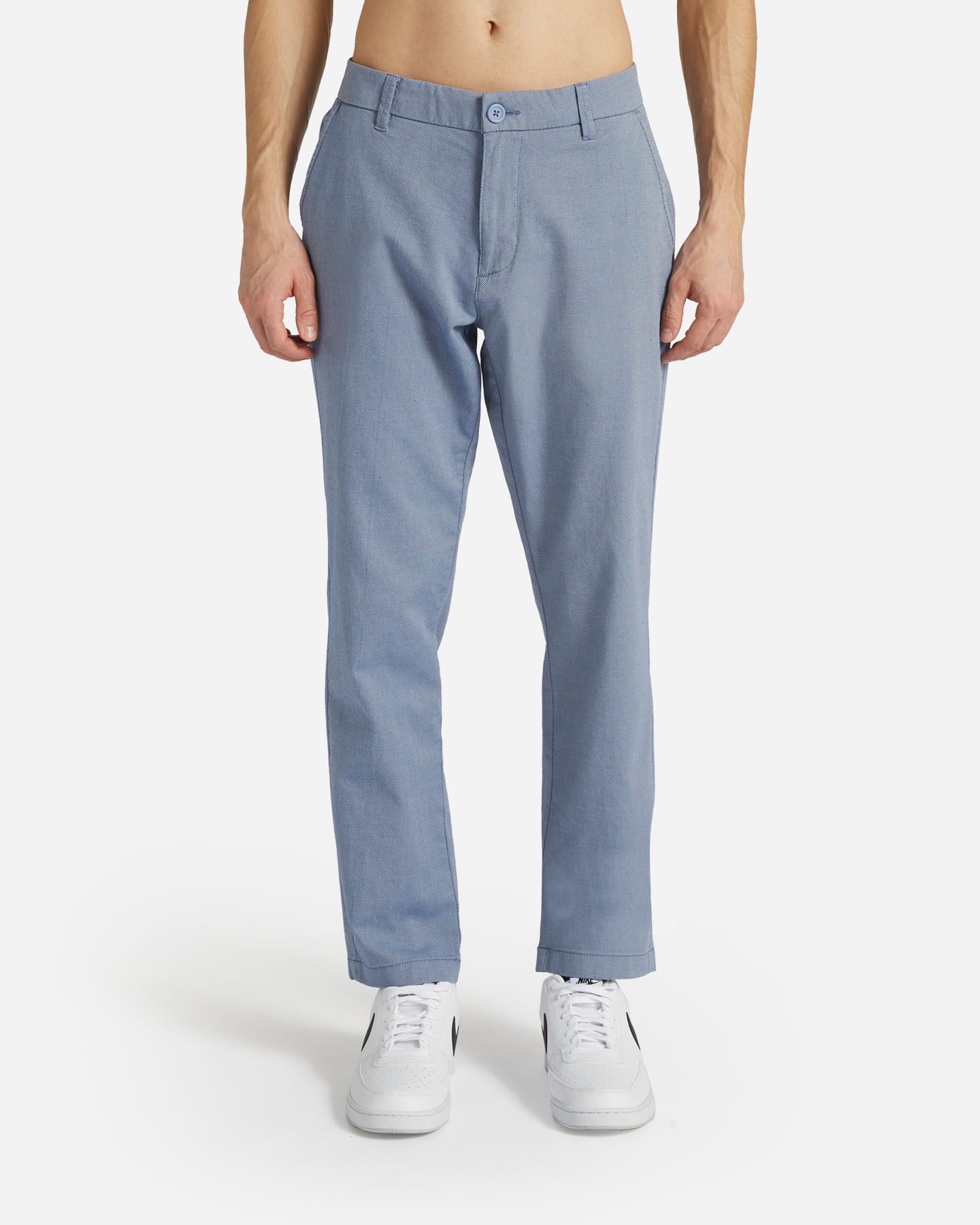 Questo pantalone dal taglio chinos, è realizzato in tessuto di cotone elasticizzato con vestibilità regular. Questo capo si adatta alle diverse esigenze di una giornata tipo, dall'ufficio all'aperitivo.