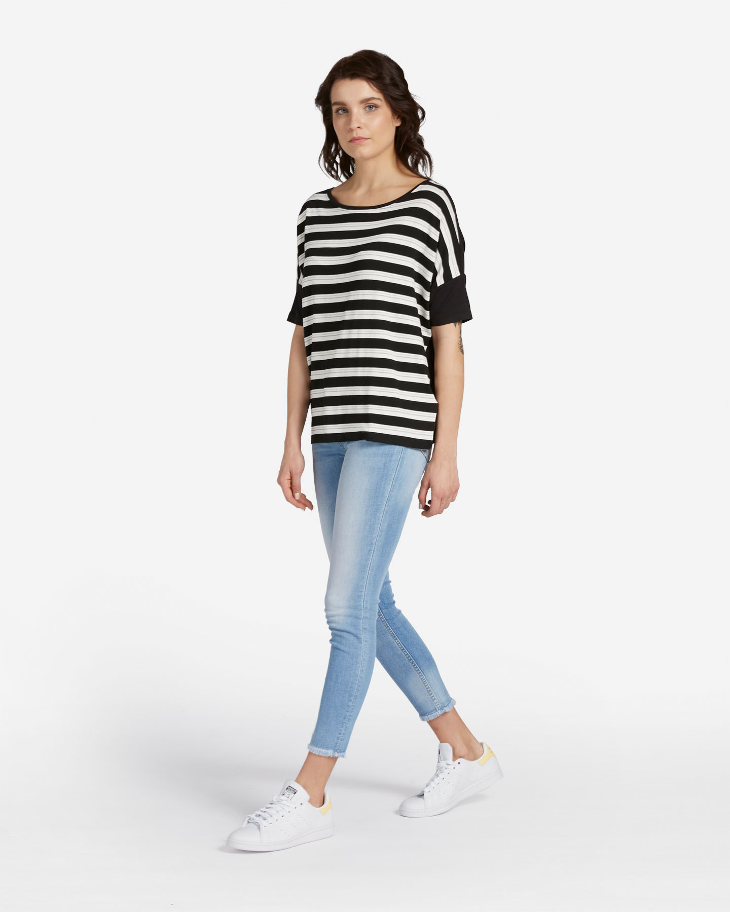 Evergreen della collezione Dack's la t-shirt Dolly in questa versione rigata si accende con tocchi di lurex a righe, per uno stile unico.