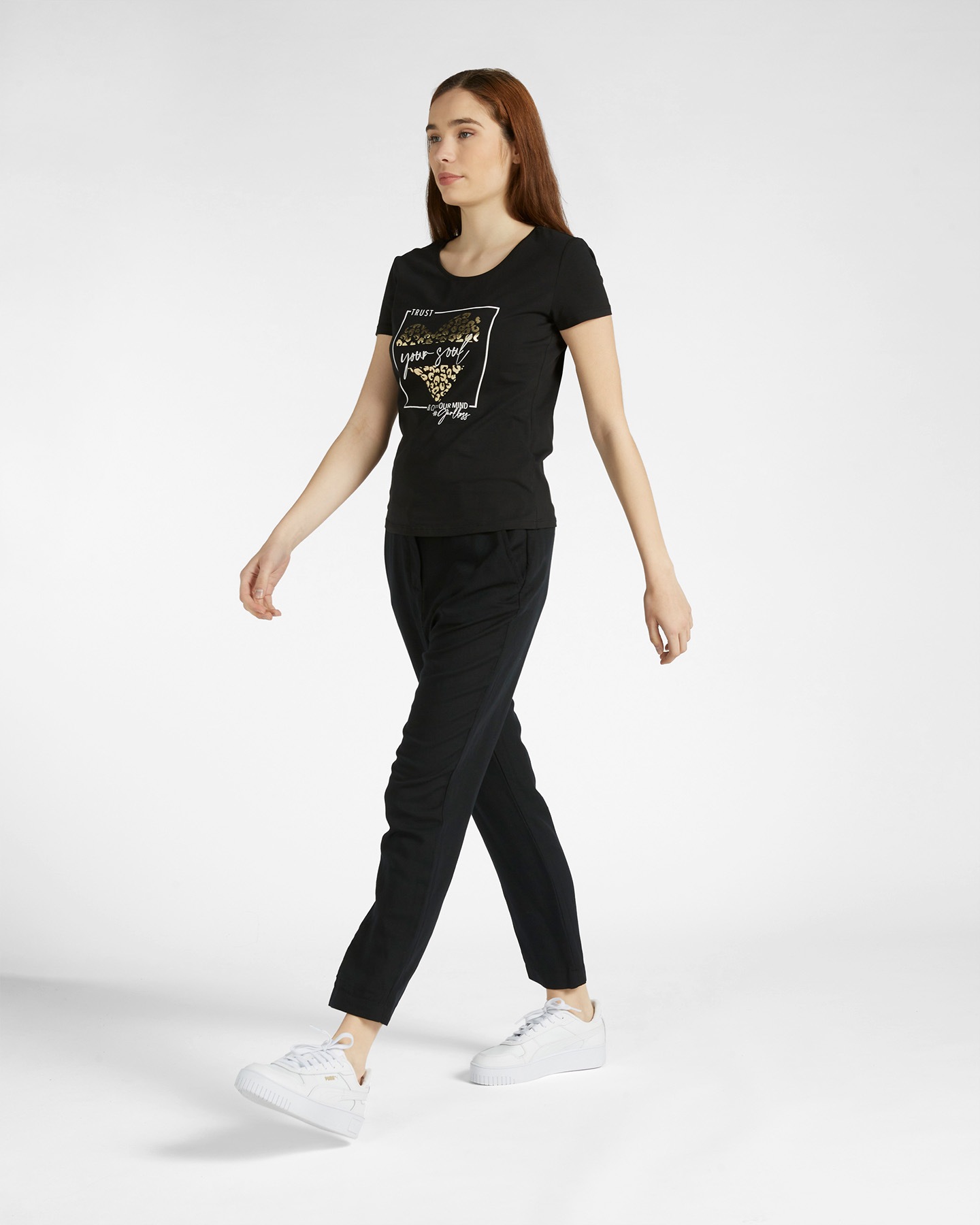T-shirt stampata con ampio scollo a girocollo.