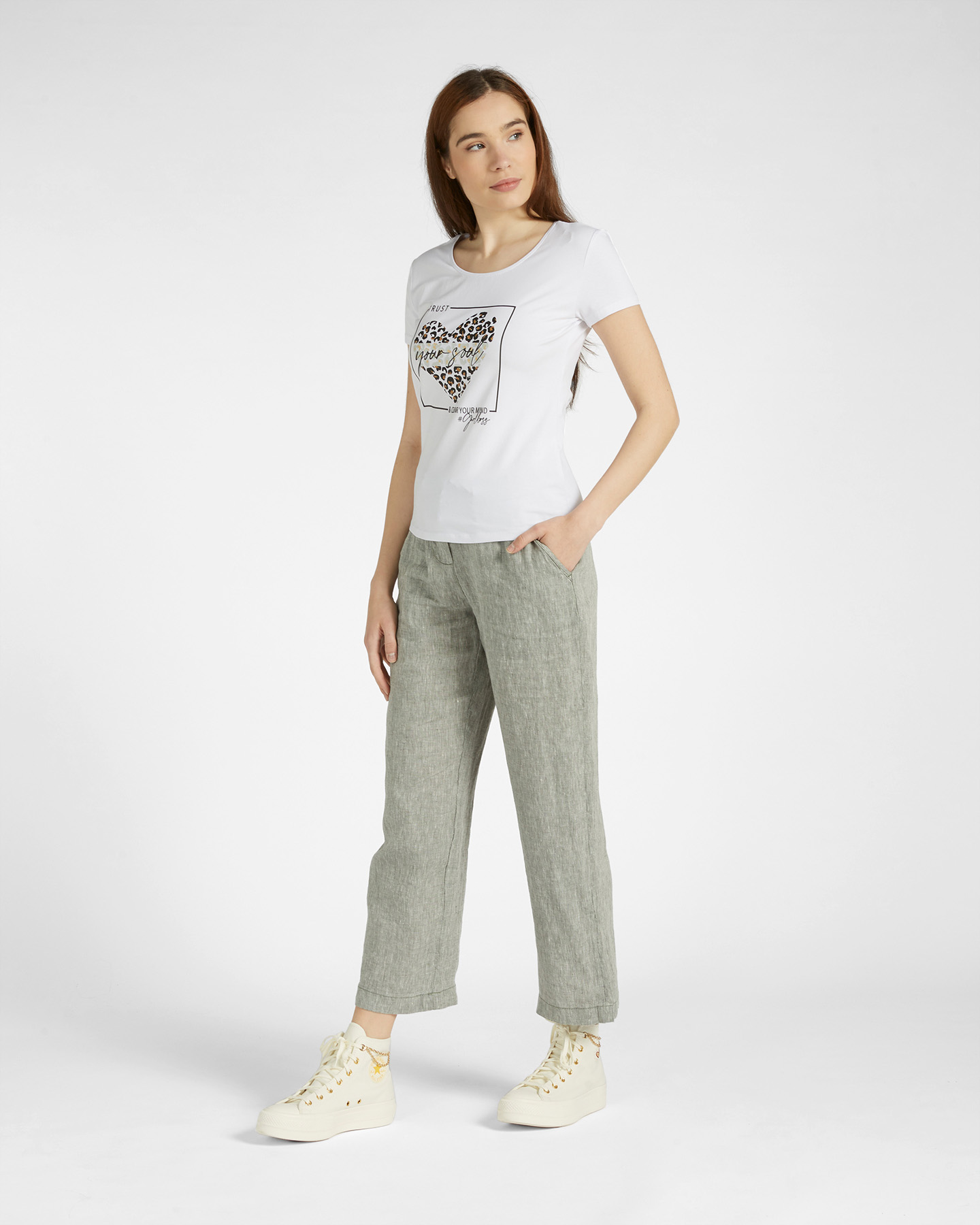 T-shirt stampata con ampio scollo a girocollo.