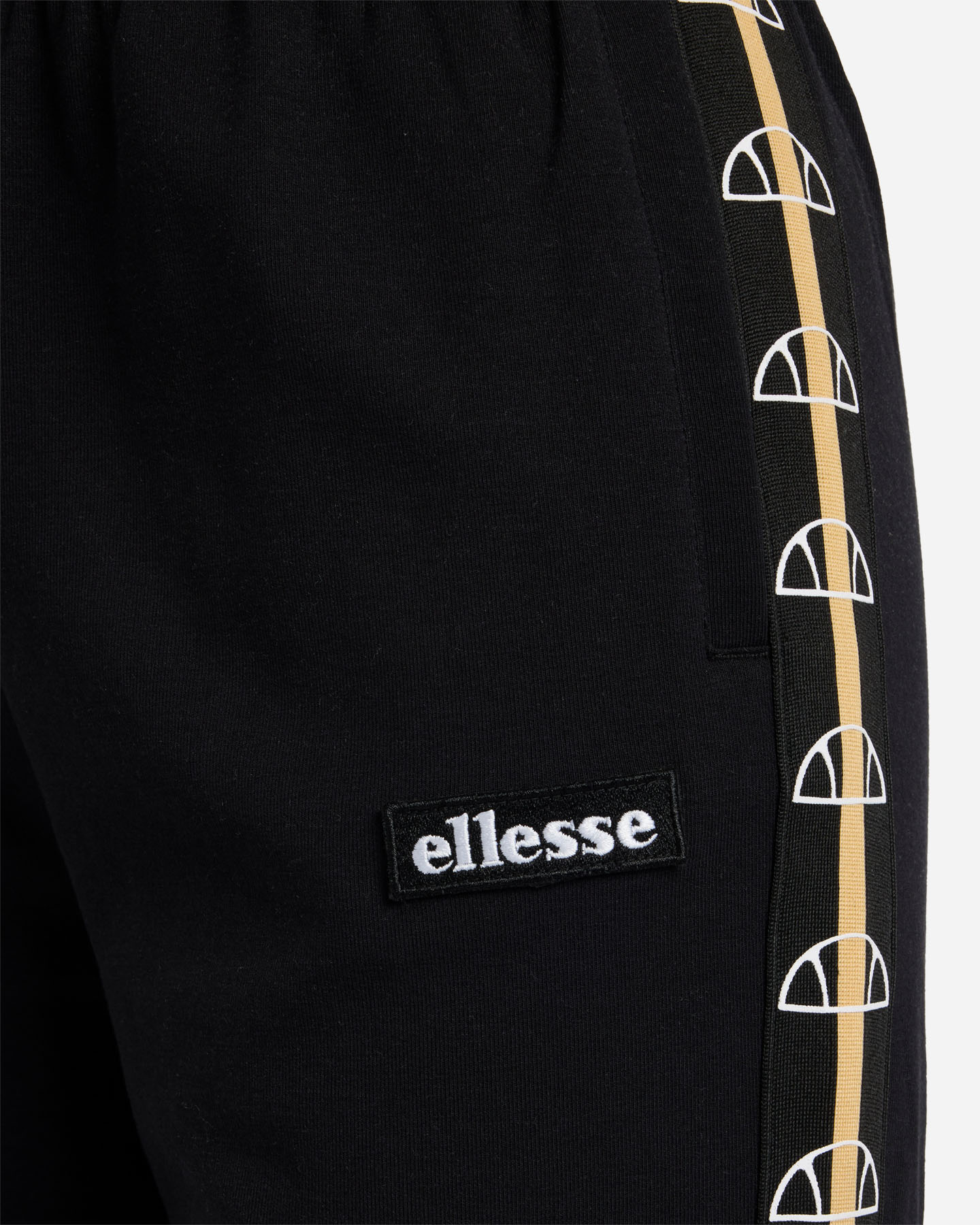 Il pantalone jogger con vita elastica è regolabile con cordini e presenta una banda laterale portalogo ripetuto, a contrasto colore. Le tasche nei fianchi con logo istituzionale patch Ellesse è ricamato. Il fondo gamba con polsino è elasticizzato.