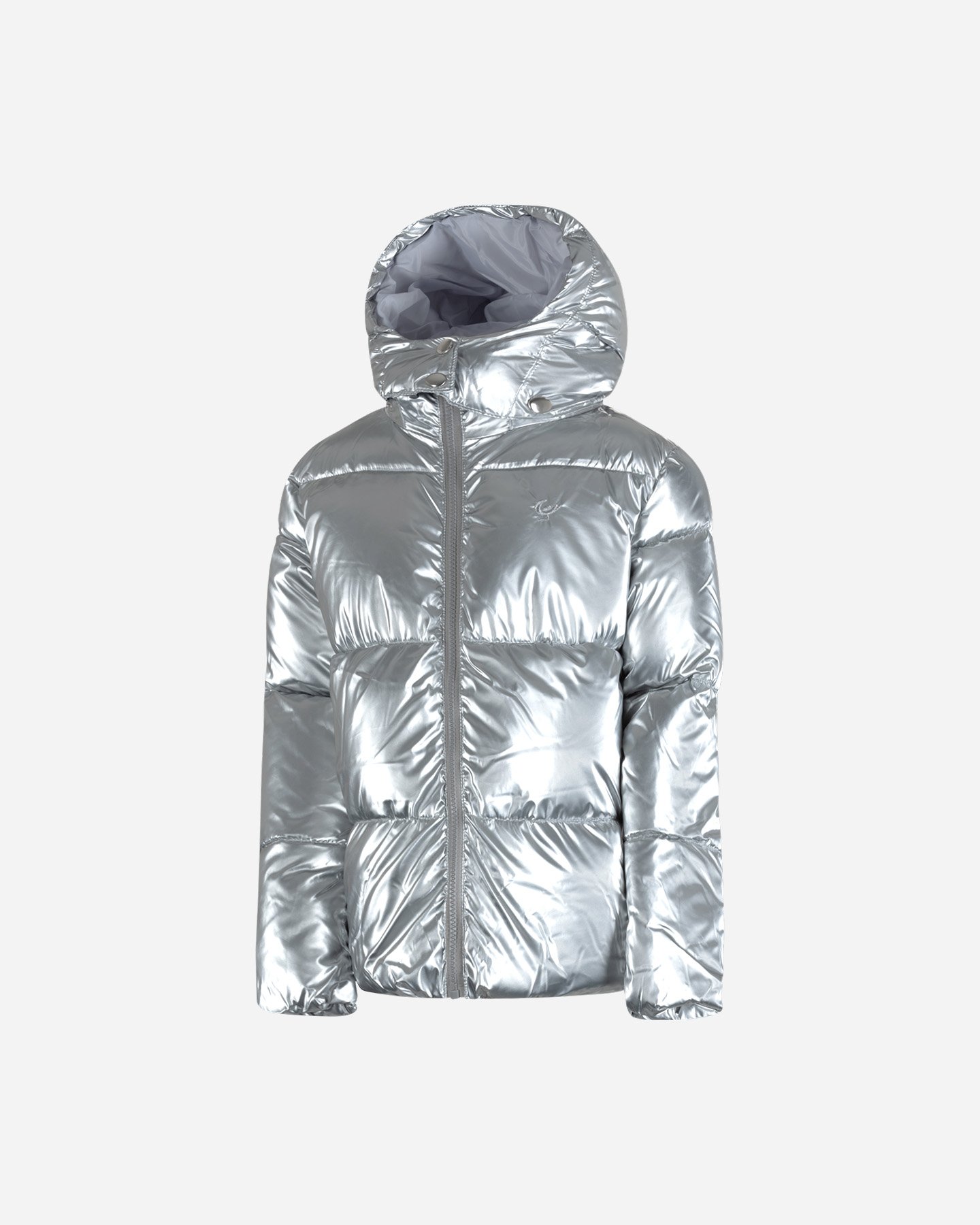 Giubbotto con cappuccio, dal colore argentato, ideale da far indossare alla tua bambina per essere sempre alla moda.