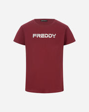 Questa t-shirt a maniche corte in Light Jersey con vestibilità regular e fondo dritto è perfetta per il tuo tempo libero. Il grande logo Freddy effetto perlato stampato sul fronte la rende un capo iconico e di tendenza. Ideale per un look sportivo e alla moda.
