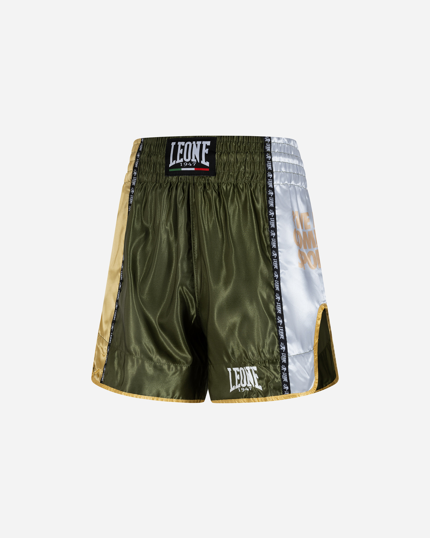 Pantaloncino kick-thai boxing in satin con stampe in sublimazione. Il disegno del pantaloncino e gli spacchi laterali lo rendono particolarmente indicato per l'utilizzo di calci e ginocchiate.