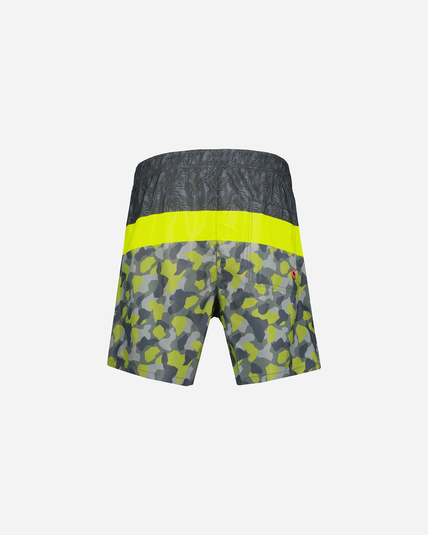 Questo boxer mare presenta un mix di stampe tagliate, con bande orizzontali, ideale da indossare nelle tue giornate al mare.