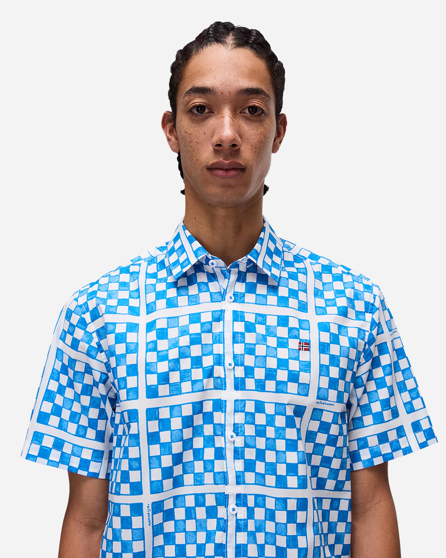 Camicia Napapijri RONGE M - Uomo-Carré interno in colore a contrasto-Tessuto lavato-Stampa all-over