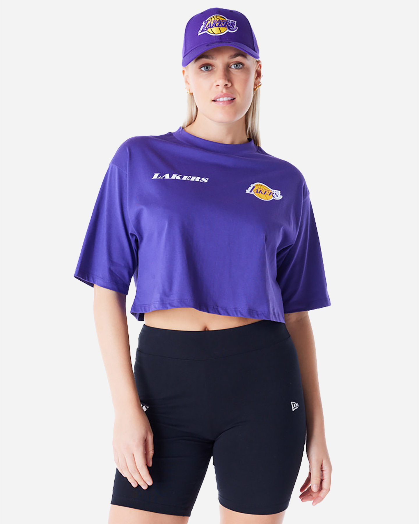 T-Shirt New Era CROP LAKERS W - Donna - Logo del team sul petto a sinistra - New Era flag sulla manica sinistra - Grafica sul retro