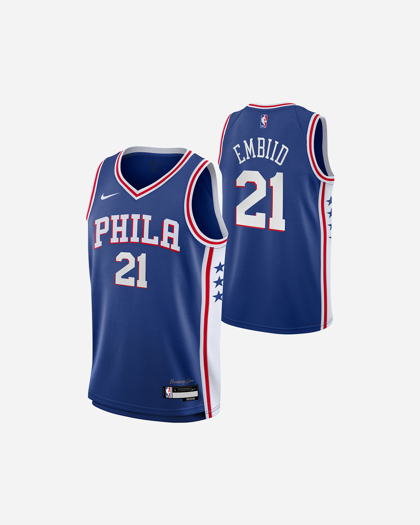 Canotta basket Nike PHILADELPHIA 76E EMBIID JR - Bambino - Tecnologia dri - fit, direttamente ispirata alla maglia da campo - Canotta realizzata in materiale premium double knit mesh - Nome e numeri in twill applicati a caldo