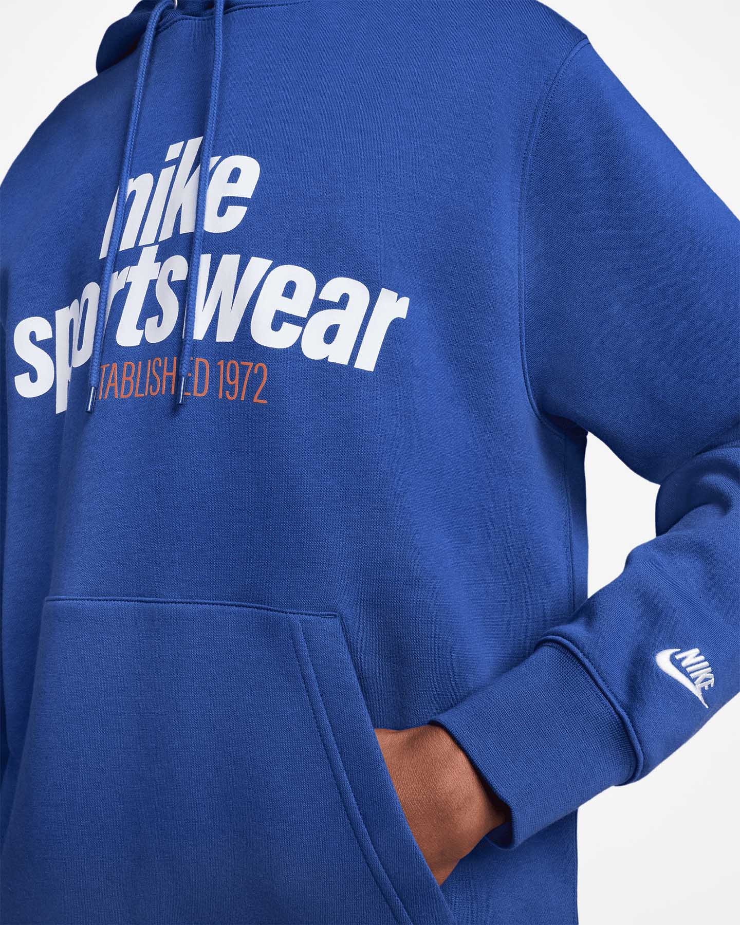 Felpa Nike CLUB GFX M - Uomo - Logo Nike Futura ricamato - Tasca a marsupio - Tessuto French Terry