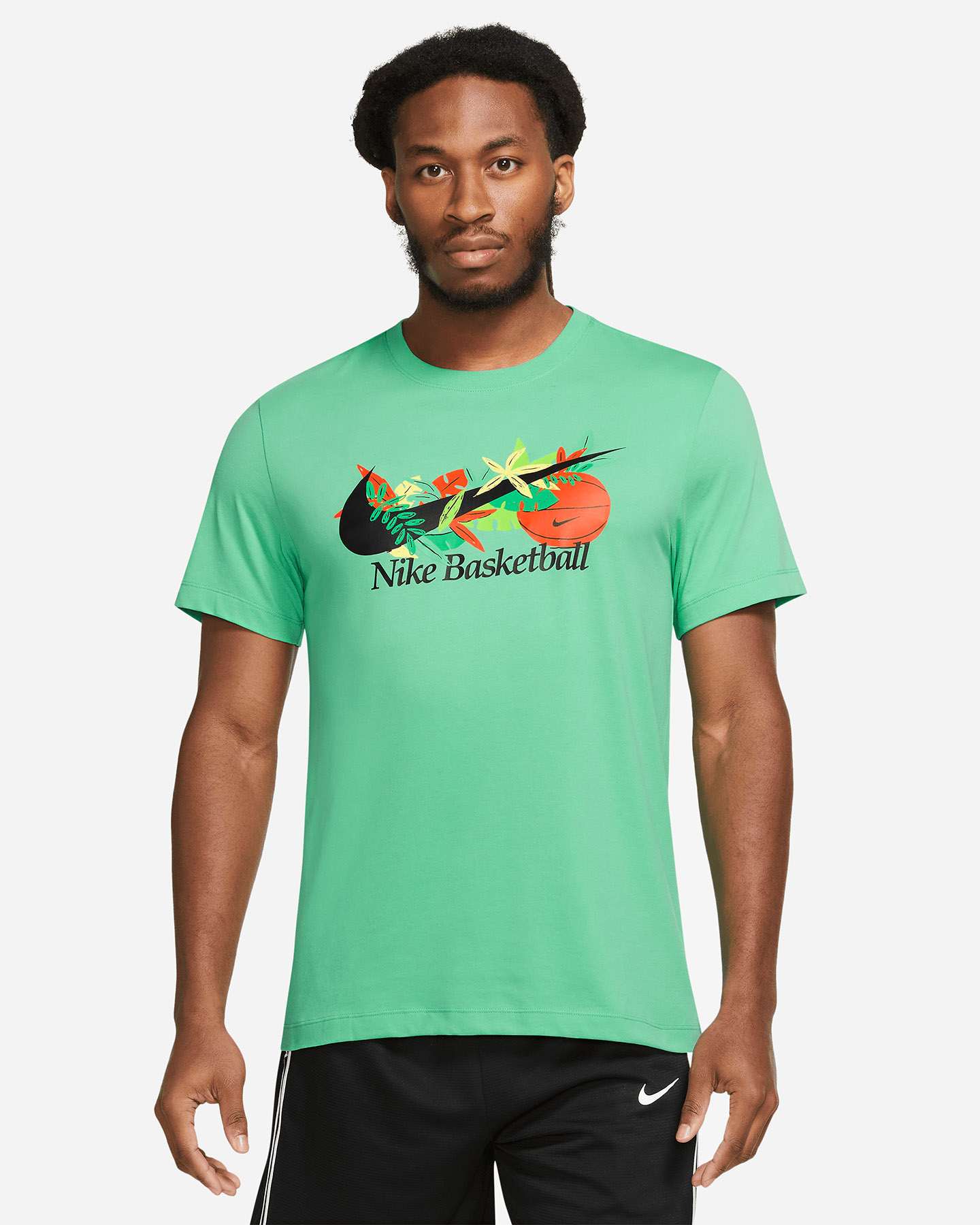 Direttamente da Nike Basketball, una t- shirt rilassata ed essenziale. È arrivata l'estate anche per il basket, con una flora vivace a rendere ancora più luminose le giornate sul campo.