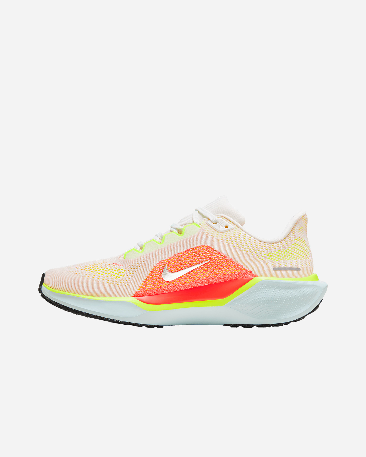 La tomaia è realizzata in mesh tecnico ancora più leggero e traspirante, per donare una calzata invitante. I bordi interni della scarpa sono comodi, traspiranti e delicati sulle dita, sull'arco plantare e sul tallone, dove i piedi sono più sensibili. Pegasus 41 avvolge il tuo piede con una fascia sull'area mediale per regalare una sensazione di maggiore sicurezza e flessibilità . Abbiamo riprogettato la fascia sull'area mediale per creare una calzata sagomata, pensata per tutti i tipi di arco plantare.