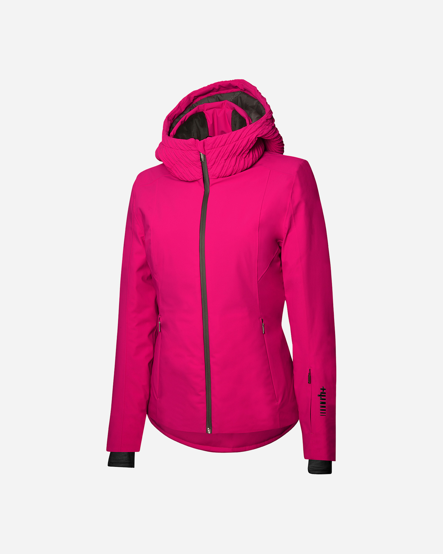 Giacca sci Rh+ XENA W - Donna - Capo completamente nastrato - Maniche preformate - Ampio cappuccio fisso in punto smock effetto Ellisse
