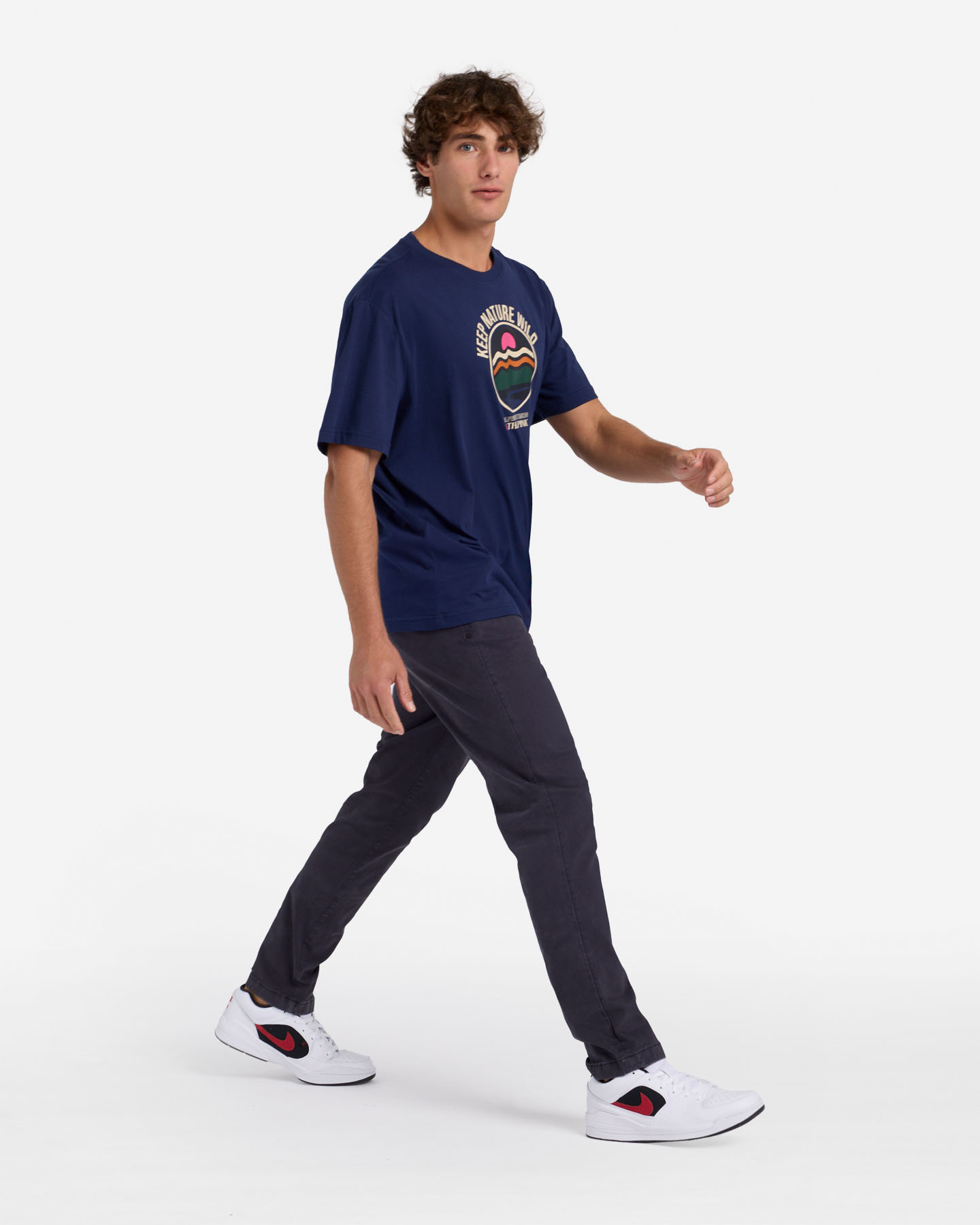 Questa t-shirt a girocollo presenta una grafica Keep Nature Wild al petto, ed è realizzata in cotone organico per trasmettere l'impegno verso uno stile di vita sostenibile.